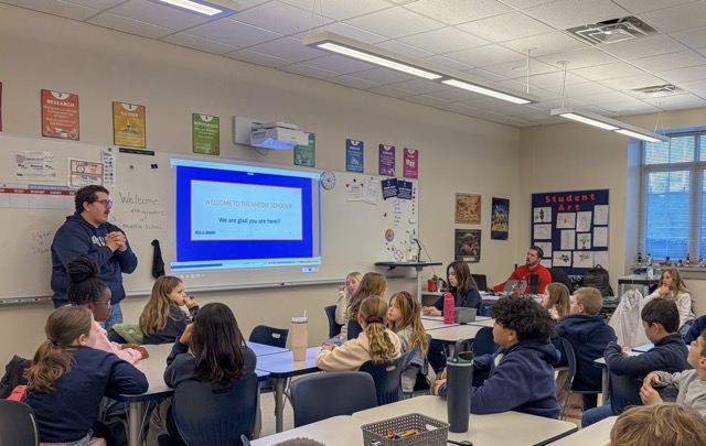 Fourth graders arrived at the MPCS Middle School building to a warm and enthusiastic welcome from fifth graders and school leaders, including Middle School Principal Kendra Sue Finch, complete with fun signs, balloons, and music. Students joined fifth grade classes for the morning, including advisory, before sharing lunch in the Middle and Upper School cafeteria. The experience helped these students on the brink of a big transition begin to picture themselves in a new setting while feeling encouraged and supported.