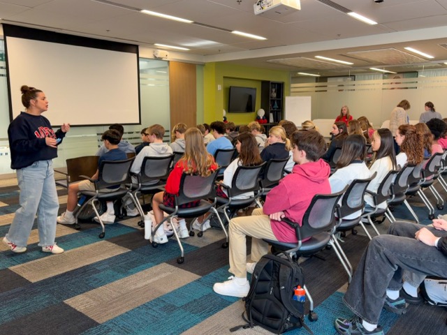 Eighth graders began their Step Up experience with a welcome from Upper School principal Marie Woods before heading off to two ninth grade classes selected based on student interest. Many had the opportunity to step into learning opportunities not yet offered at the Middle School level, including worship band, science labs and weight training. The morning wrapped up with a time to regroup and reflect together, offering students confidence as they look toward Upper School.